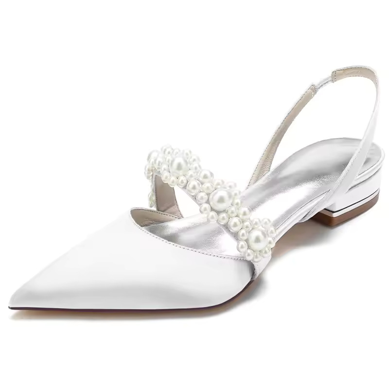 Pôvabný strih v jemnom bielom saténovom prevedení pristane ku jednoduchým svadobným šatám v dlhej ale tiež midi dĺžke. Krásne sa hodí ku svadobným šatám s nadýchanou saténovou sukňou a perlovým zdobením vo vrchnej časti. Sústreďte sa na tanec bez toho, aby vás rozptyľovala bolesť chodidiel.